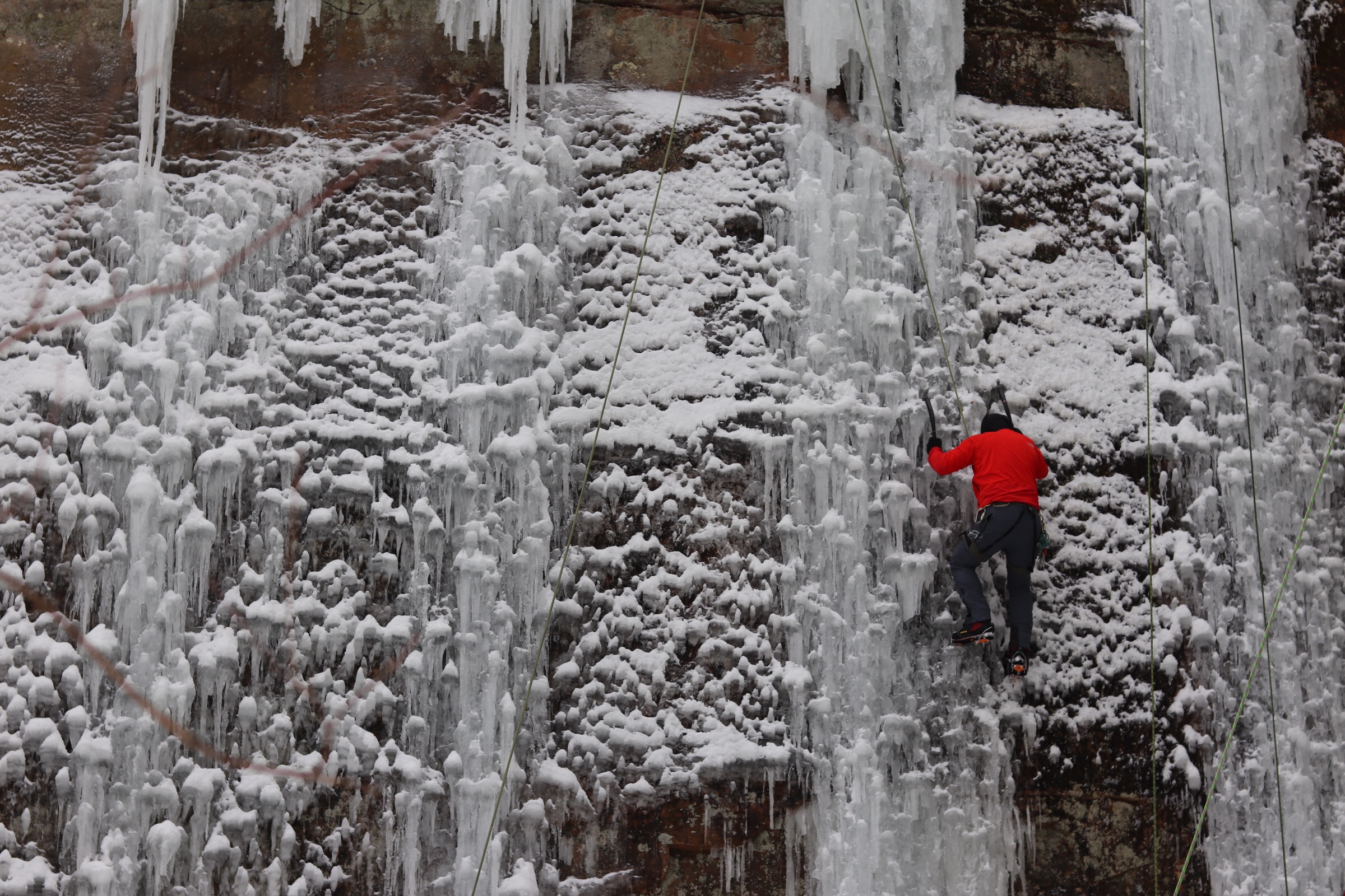 I headed up north for the Sandstone Ice Festival (14th Annual!) and after spending a weekend winter camping and shoe shoeing, climbing frozen water seemed like a logical next step!